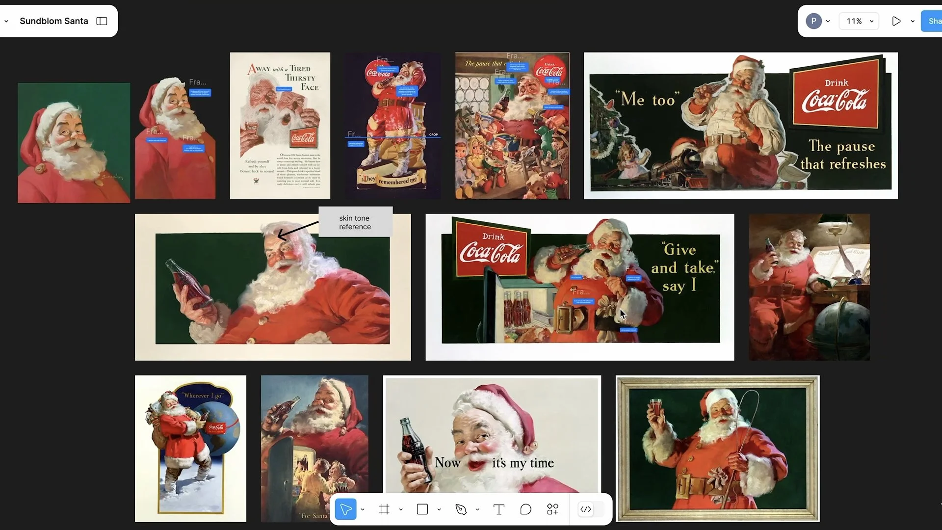 Santa’s signature features—his rosy cheeks, flowing white hair, and even the subtle detail that he never really shows his teeth—had to be carefully documented. By defining what truly makes Sundblom Santa unique, we ensured no detail was overlooked.
